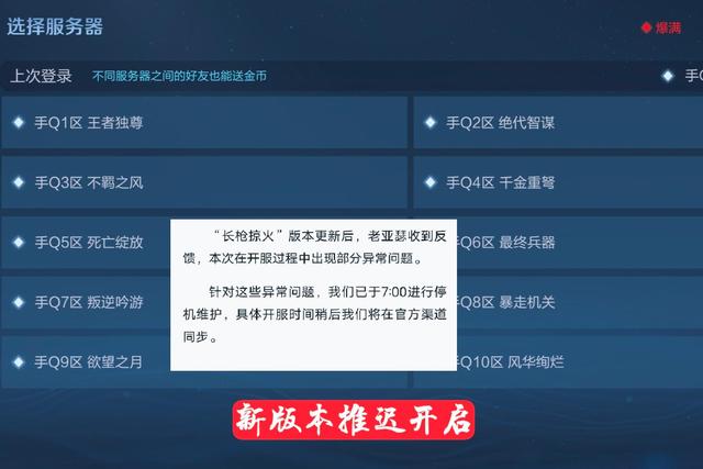 以前的时候基本上说是在9:30开服,大多数在7点左右的时候都是能够正常的进入到游戏中,而这一次王者荣耀新版本刚刚更新完,官方就发布了一个紧急公告,又对正式服进行了停机维护,具体开服的时间也没有确定,看来这一次新版本问题还是挺多的,而经过两个多小时的查找问题,官方已经把这一次出现的bug情况进行了定位,而现在正在紧急的修复当中。