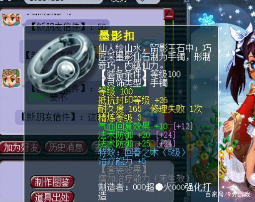 卖家展示了两件灵饰装备,手镯以及佩饰各一件,两件都是附加了不错的属性。100级手镯主属性为抵抗封印,下排附加气血回复以及双法术防御属性,精炼了3级星辉石。佩饰装备附加了气血与防御属性,两件装备都点化了5级回春之术特效。
