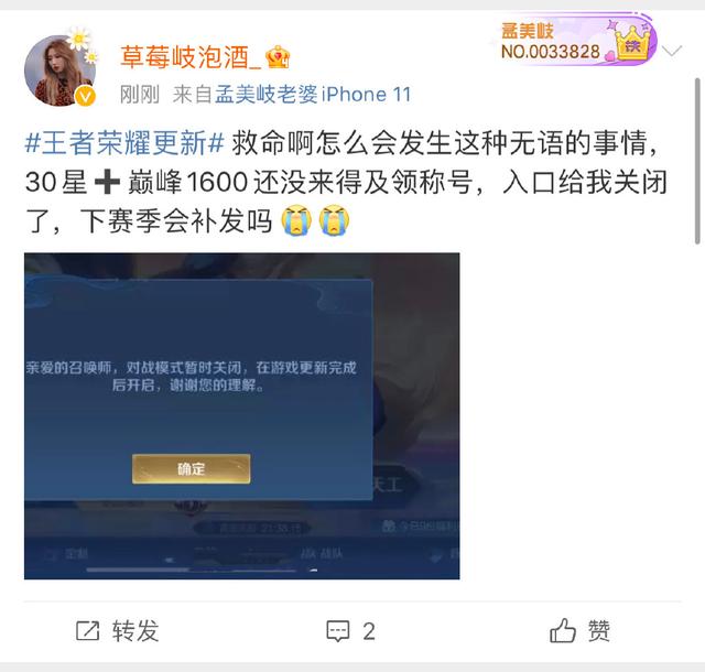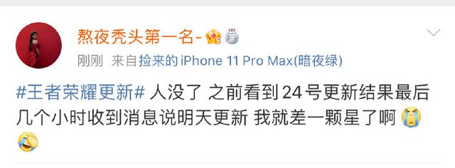 于是很多玩家就遭遇了一样的事情,那就是最后上分的时间不够啦,有玩家表示自己只差一颗星星就能够到荣耀王者,但是官方直接关服了,切断了最后的上分机会,微笑着说没事,围观玩家爆笑如雷,希望他们下赛季都能达到自己想要的段位。