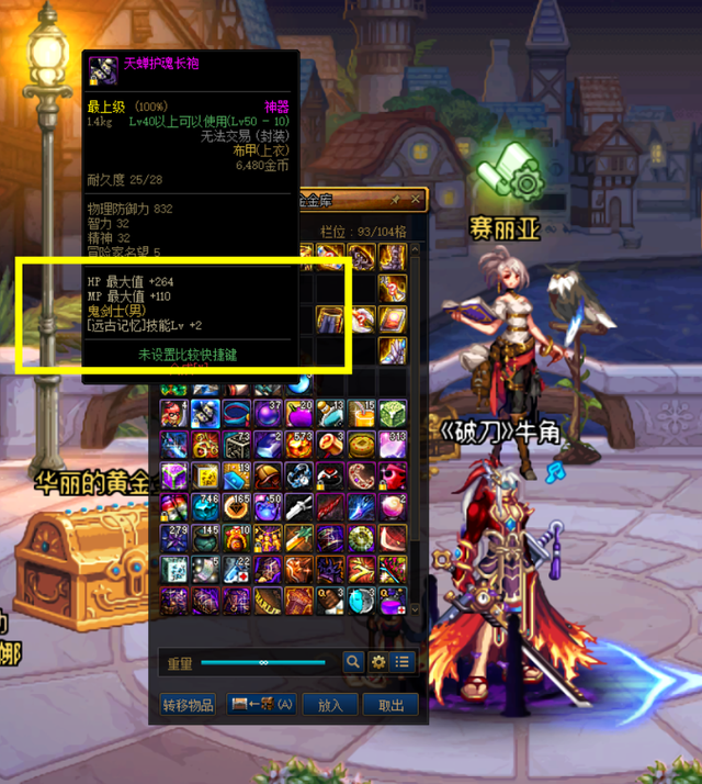 50级的粉装增加2级远古记忆,这是每个鬼泣必须准备的装备。当时这一件就要卖到1000万,也行2级的技能属性,机械牛就能秒掉。