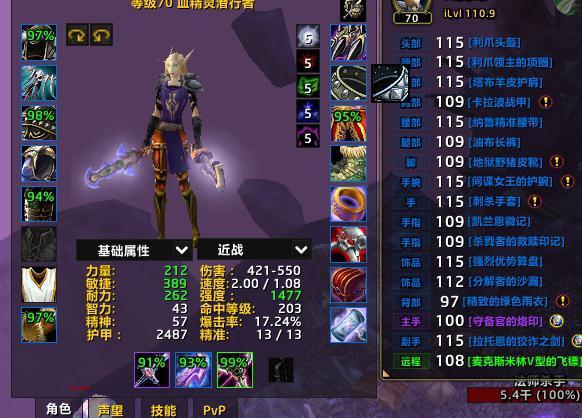 这是本周的卡拉赞副本DPS统计表,可以看到战斗贼的DPS虽然低,但是还是超过了惩戒骑、平衡德和猫德的。当然敏锐贼无奈垫底,但是敏锐的用武之地也不是PVE。