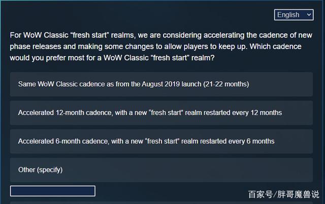 暴雪最新的问卷主要针对两个机制对玩家们进行了调查,一个是滚动服的开放模式,一个是永久60级是否需要加入一些新的玩法。