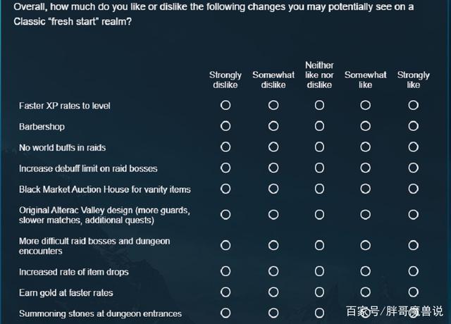 比较值得关注的就是针对副本的掉调整,在60级怀旧服中玩家们已经习惯了世界BUFF的存在,如果世界BUFF无法带入团本,那么玩家们开荒的难度也会剧增,更何况按照这份调查问卷中第七条的说法,暴雪也可能重新加强BOSS的难度。