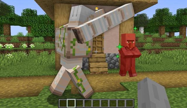 在玩家心目当中,铁傀儡对村民有着一种莫名的信仰,让我们都十分敬佩。然而看到这一幕,我对铁傀儡的信仰崩塌了,它举起了村民。