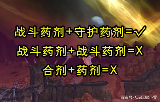 合剂为战斗与守护药剂,因此只能吃一种。而且当吃了合剂之后,就不能再吃别的药剂了。所以TBC不能再像60年代一样,吃完合剂之后,再吃一个猫鼬或强奥等药剂了。