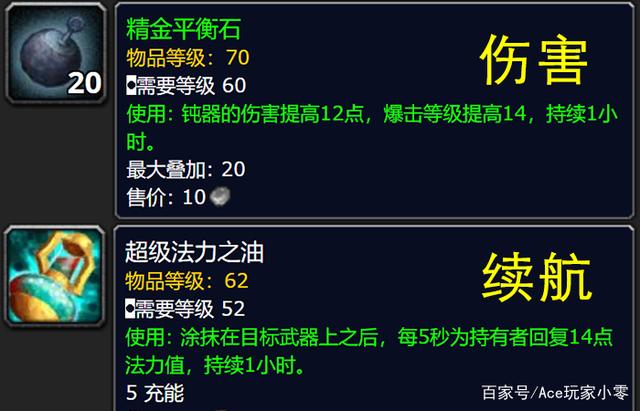 如果哪天这个bug被修复了,或者你没有装备钝器,那猎人就要抹法力之油,超级法力之油与卓越法力之油都可以,主要是提高持续输出能力。