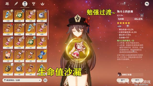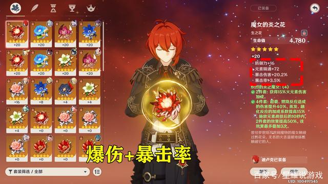 而头部位置的话,能够选择爆伤就尽量爆伤,暴击率不够的话,那么就只能够先用暴击率的帽子先过渡一下,最终任何角色要想圣遗物毕业,头部位置的圣遗物属性,必定得是暴击伤害才行。