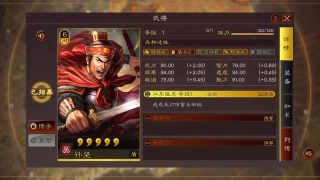 孙坚是三国志战略版游戏中首充送的武将,只要6元就可以拿到五星肉盾武将,也是很多平民玩家开局快速开荒的必拿神将。