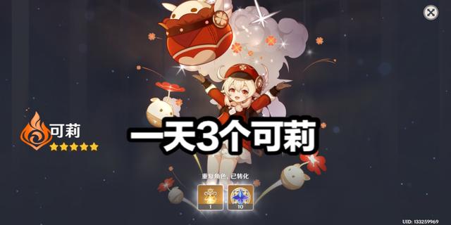 而这位玩家的抽卡经历很少的验证了这个道理,在可莉结束的前两天,玩家花光了自己抽存的所有原石,不是很多总共才1.3万原石,但是玩家一天之内连抽到三个可莉,第一个可莉是30抽出的,第二个可莉是40抽出的,最后一个可莉,直接10抽之内就出了,然后玩家的可莉直接两命了,简直羡煞旁人了,看到这里,盟盟看着自己仅剩的500原石,眼角默默地流下了羡慕的眼泪,这次学到了,万叶的祈愿池,我也这样试试看。
