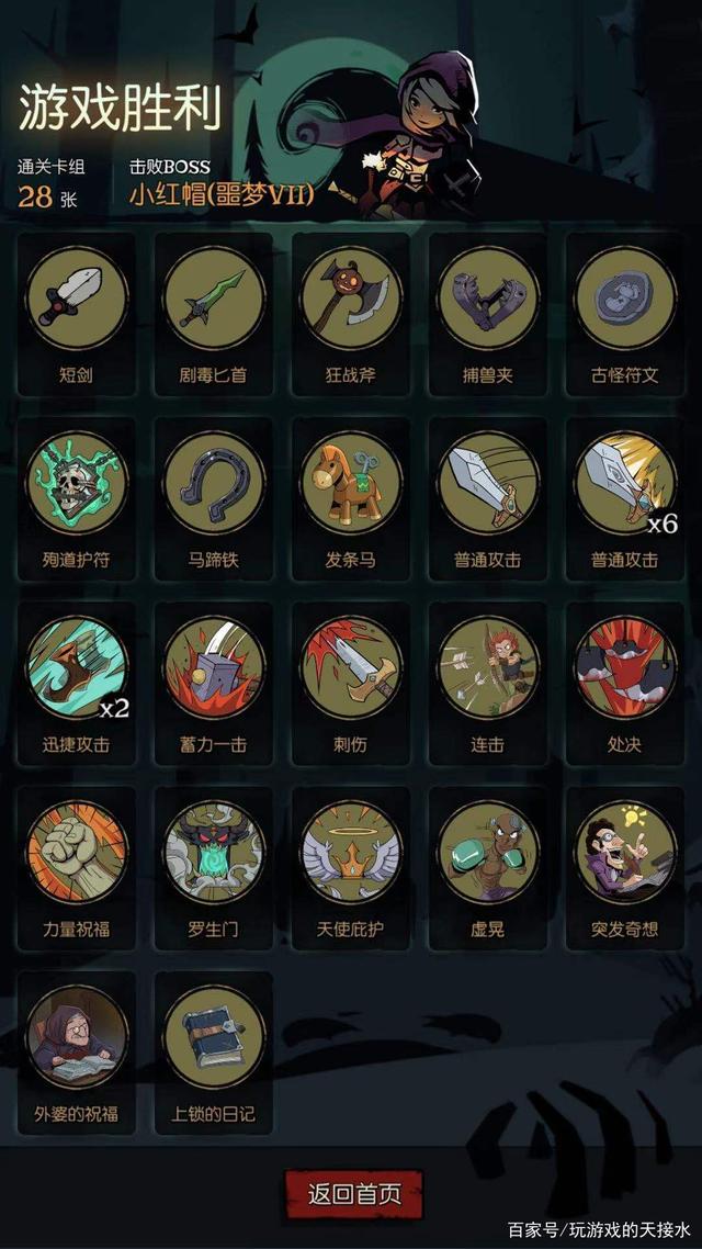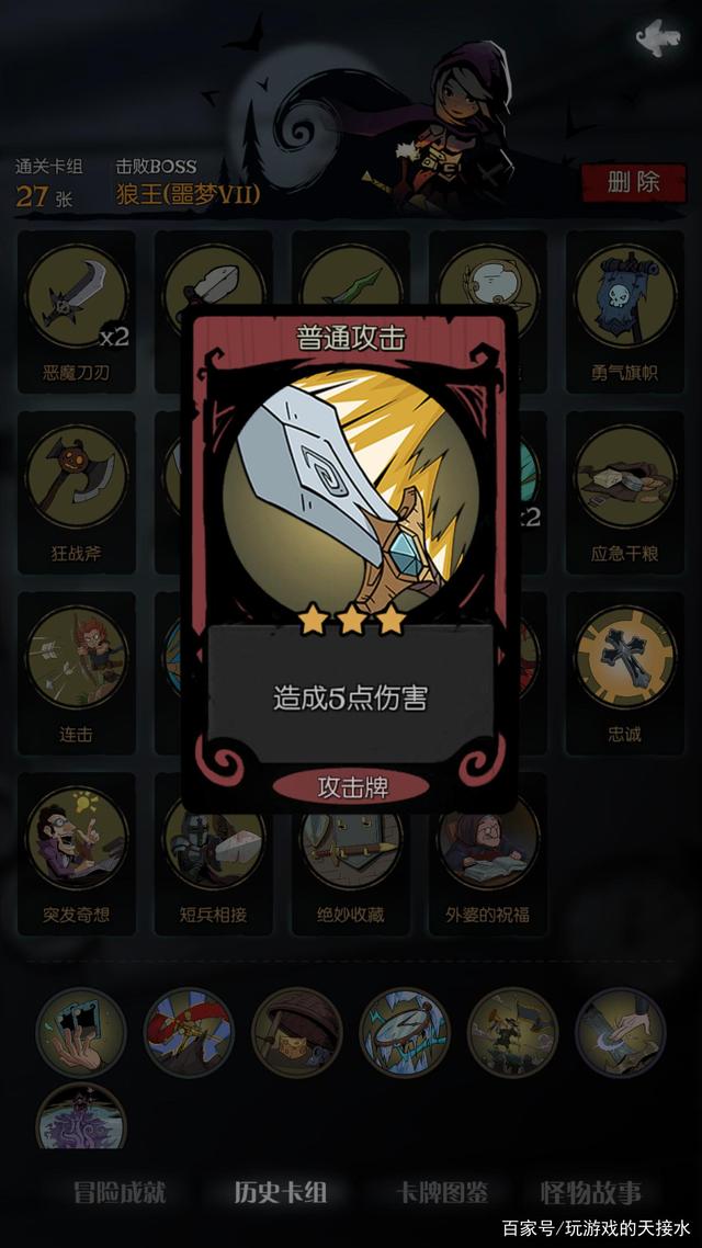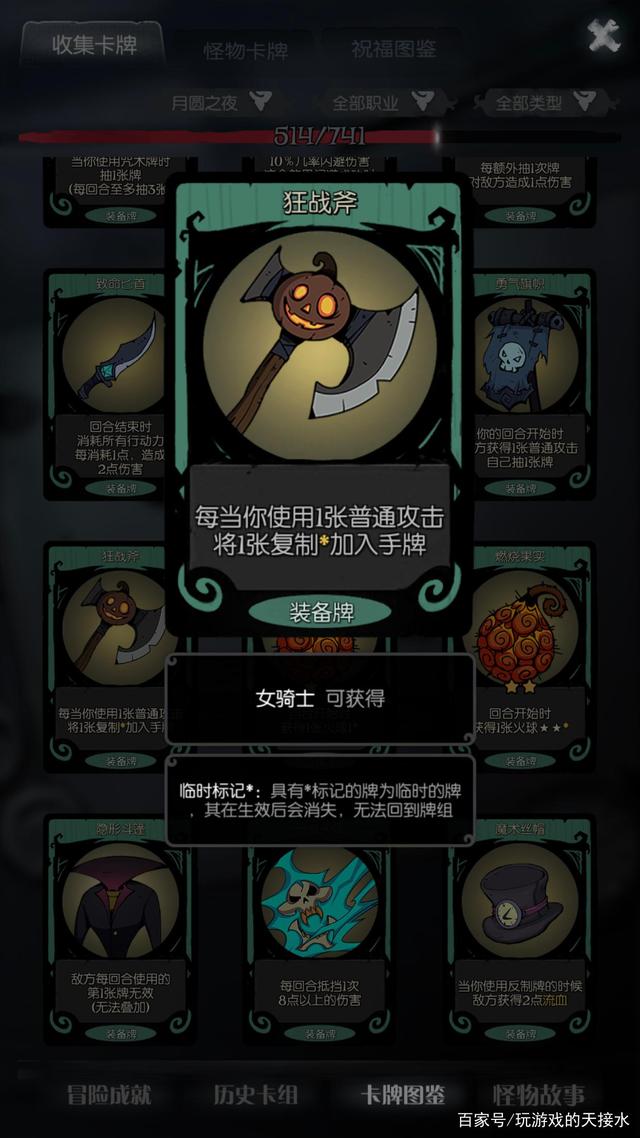 这套牌和核心就只有一张卡,狂战斧,在升级、触发事件后,如果看到了这张卡无脑拿,之后复制一张狂战斧,触发稀有事件时,优选选择升级装备栏,先看一下狂战斧的属性。