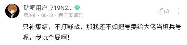 简单的了解了一下,发现大部分玩家对这则看法还是非常不满的。为什么不满呢?前面也说了,主要还是和游戏体验有关。有一位玩家表示,如果只填兵还比如将账号给大佬玩家直接做填兵号,从这则言论我们就能看出对于平民玩家只能填兵的说法大家是真的非常不满。