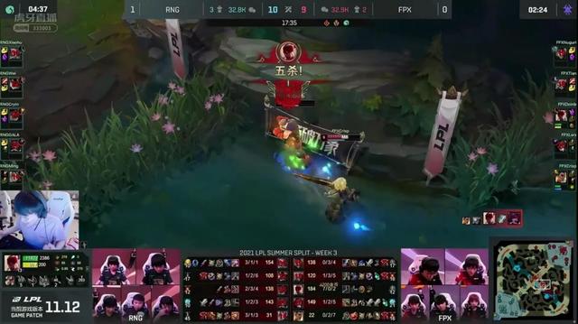 虽然在本赛季因为迟迟没有适应版本导致RNG总体积分成绩并不理想,但是这也丝毫不影响小虎在上路的出色发挥,选出格温成功压制nuguri并对其完成单杀帮助战队成功拿到开门红;然而第二局中下两路被FPX抓住机会形成全线碾压,中期小龙团战doinb盲僧站了出来,在一波极限操作收获五杀之后成功率领战队接管比赛并将比分扳平。观战的姿态见状直呼:我滴个乖乖,FPX也有超人Doinb。