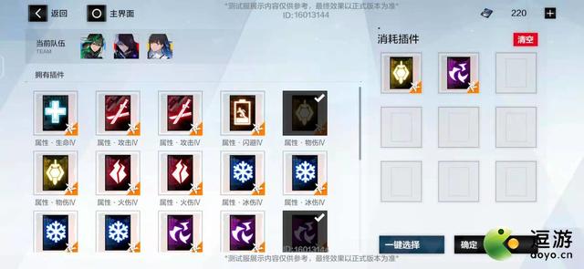 2.可以在队伍界面使用,可以使得该队伍所有成员获得插件效果,在成功通关后,该插件会消失。也就是说,用作于提升整个队伍的插件,是一次性的。
