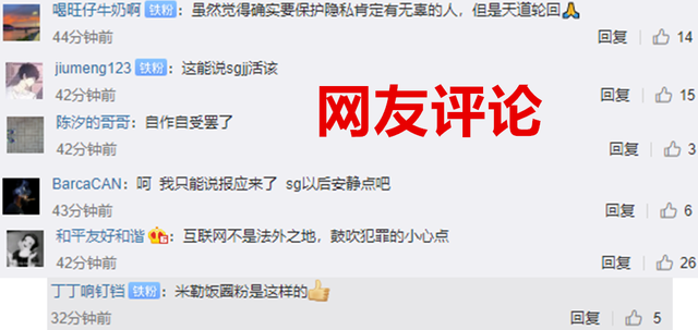 虽然现在官方已经出面呼吁,但是网上这件事已经到了不可收拾的地步,对于阿水粉丝遭到人肉各网友也是表达了不同的意见,有网友觉得这已经触犯到了法律,互联网不是法外之地,鼓吹犯罪的都小心点,米勒的饭圈粉就这样?但是也有网友表示只能说活该,之前水鬼姐姐们不是到处网爆其他选手和解说,现在只能说是天道轮回自作自受罢了。