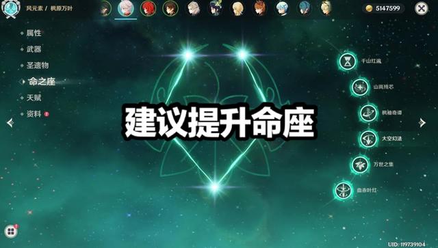 建议提升万叶的命之座