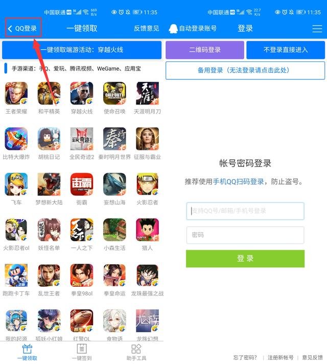 进入 App 后,点右上角的QQ登陆,登陆后,每天的金币和游戏福利就可以一键领取了。