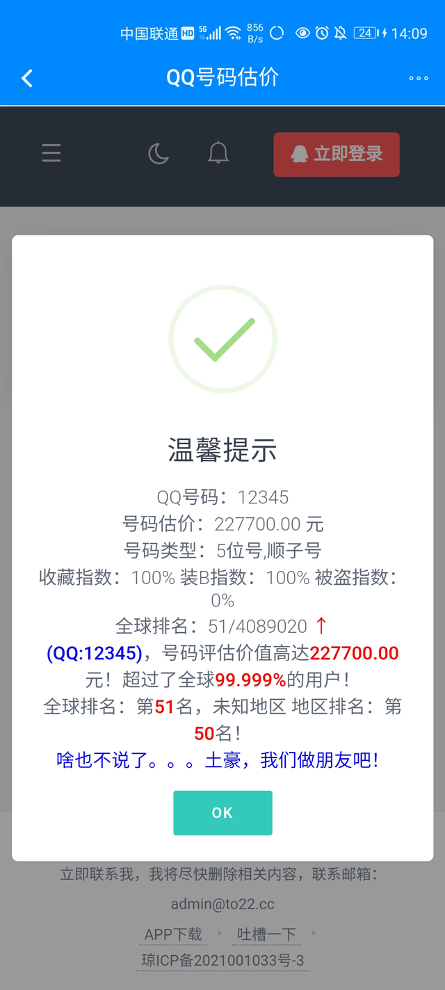 所以,我觉得这应该是按照靓号类型进行估值的,果不其然,我输入12345,估出来的是227700元。