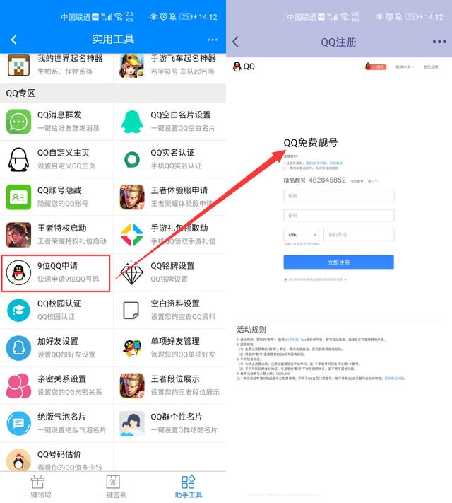 如果自己的QQ不是靓号也没关系,它还提供免费的靓号申请功能,点击“9位QQ申请”就可以进行免费靓号申请和9位数的QQ号申请。