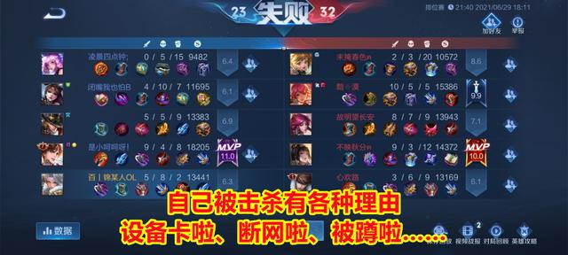 但是如果是队友被击杀的时候,无论是队友网络卡顿,又或者是队友被蹲草丛击杀,反正就是菜,就是垃圾,再多的理由也无法掩盖,无法掩盖你就是不会玩这位英雄或者是这个位置的事实。