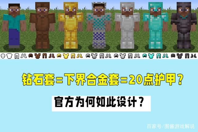 那问题就出现了,钻石套装和下界合金套装都是20点护甲值,理论上都可以抵消80%的伤害,那下界合金套装存在的意义在哪里?难道只是它不会被烧毁的特性?