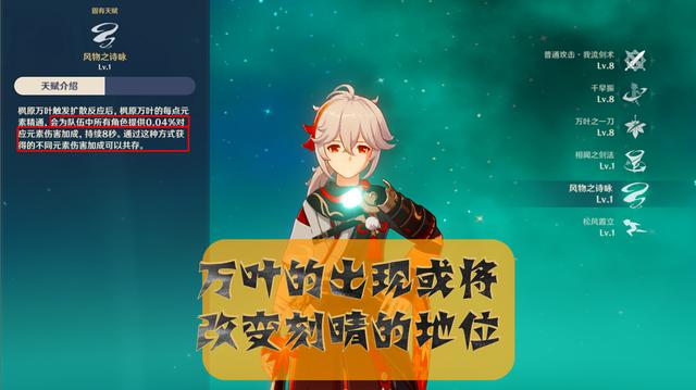 对于刻晴来说,本身元素反应就很拉胯,即便是增加了元素精通,其实作用也并不是很大。不如,万叶这种直接增加元素伤害的方式可观。所以,万叶的这种无差别增伤,或将改变刻晴的地位。即便是不打元素反应,也能够让刻晴能够在深渊有一席之地。万叶成为刻晴崛起,最重要的一个“拐”。