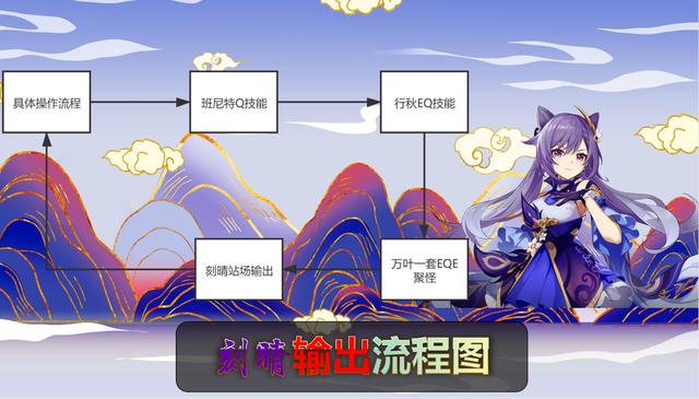 具体的输出手法是,班尼特Q技能起手,行秋EQ技能追接,紧接着万叶一套EQE聚怪之后,此时就能把刻晴换出来,一个天街巡游,就能够让刻晴在当前环境中伤害最大化。大招结束之后,还能够EE附魔普攻,打重击伤害。