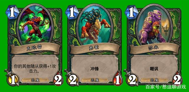 恶魔伙伴,无论是嘲讽站场、冲锋打脸还是光环加攻,都是优质的一费怪。提前入场的精简版动物伙伴就是这么牛。正如哈霍兰公主和恐鳞追猎者、扫帚和肖尔,一样的特效,低费即使亏一点身材也是值得的,相信很多玩家在标准也嗅到了赛马场的气息。如果挨刀,亡语瞎惨遭连坐,这应该是设计师喜闻乐见的:削两套牌只返一张卡的尘。