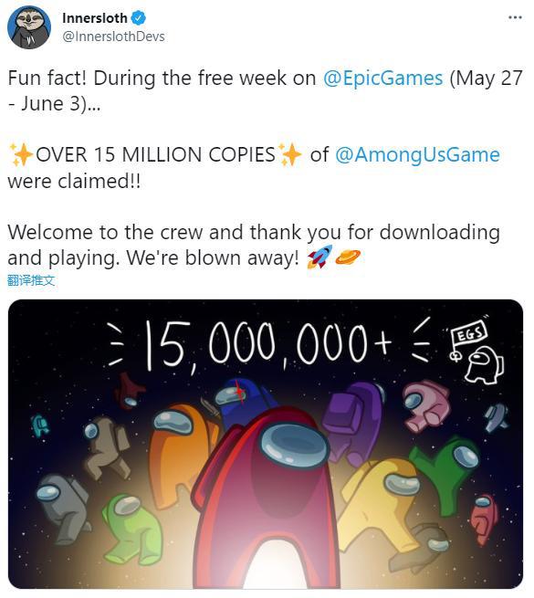 IT之家 7 月 1 日消息 太空狼人杀游戏《Among Us》的开发商 Innersloth 近日宣布,Epic 免费活动为该游戏带来了超过 1500 万份的领取量,官方表示欢迎,并且感谢玩家的下载与游玩。