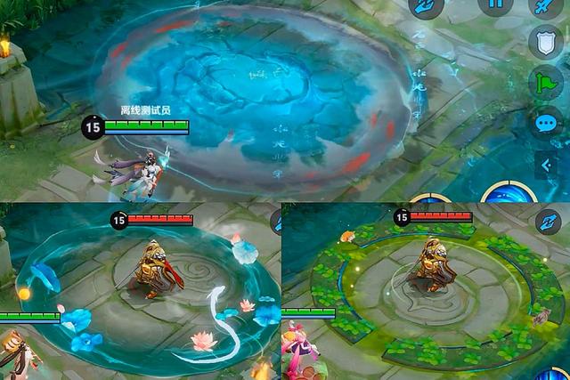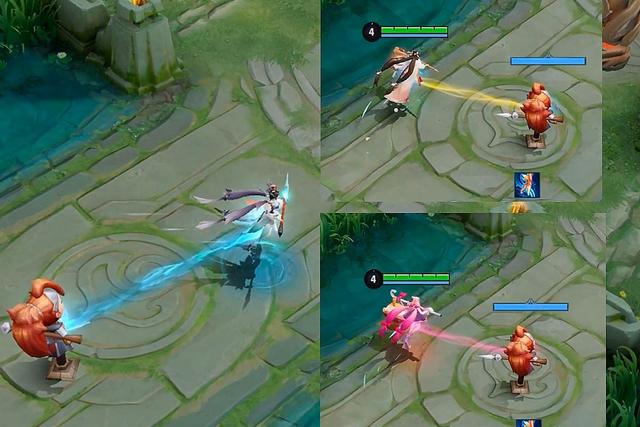 在被动技能上面,三款皮肤其实没有什么太大的不同,因为在游戏内的技能特效颜色是不一样的,所以这三款皮肤的被动技能颜色都会和技能的主要颜色进行搭配,猫狗日记是一个粉红色,而大乔的白鹤梁神女是一个淡蓝色,白蛇这款皮肤则是一个淡黄色。