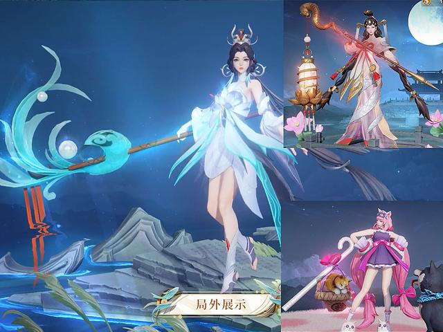 我们先来看一下这三款皮肤的局外动画展示,整体来看三款皮肤都是各具特色,毕竟风格是不一样的,白鹤梁神女和大乔的白蛇皮肤,整体的样貌看起来差不多,在衣服和服饰上面发生了改动,而大乔的猫狗日记这款皮肤看起来风格有些特殊,抛弃了很多的锚点,成为了这位英雄最经典的制作。