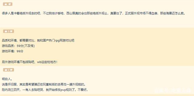 事实上,就连《剑网3》官方,也想要把“怀旧服”当作独立于当前版本和历史版的一个“另类版”游戏,说是怀旧服,其实是希望骗还在玩重制版的去再花一遍外观钱。而这种行为,引起了玩家们的激烈反驳。甚至有玩家直接表示“没有金刚钻就别揽瓷器活,不能像《魔兽世界》那样做出原汁原味的怀旧服就好好在现有游戏版本上做内容,搞一个所谓的怀旧服再割一次还在玩的玩家韭菜有意思吗?”