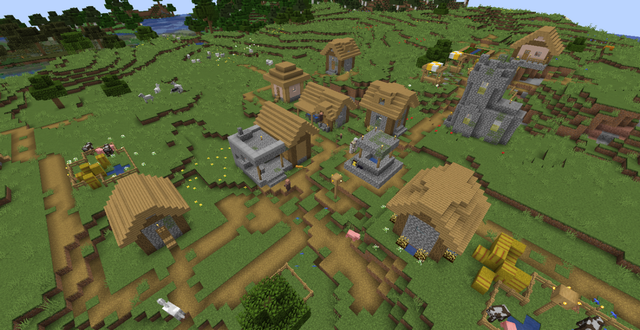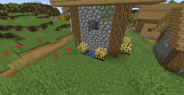 对于建筑的选址,一般在村庄比较合适。如果周边没有村庄遗迹,一些大型的建筑物也是可以的。对于这种建筑而言,在建筑物的旁边进行打造会比较好。这里,就选用平原村庄中的一个角落来做建筑。