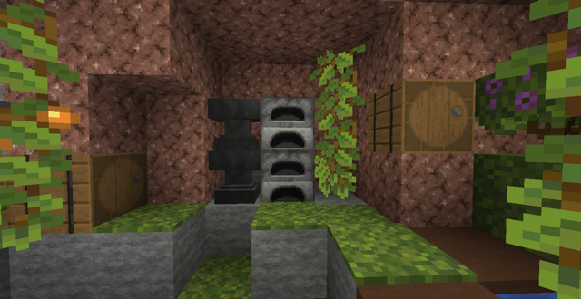 内部的中心部分,可以连通洞穴,也可以进行人工建造,如果说人工建造,无异于就是分成多个功能区,进行格式化分区建造。而对于天然洞穴而言,很多玩家都选择将其夷为平地,进行内部结构构造。其实也不用如此复杂,我们可以通过生态修复的方式,让洞穴“绿色”起来,这样我们的地下生活也许会比地上更加丰富多彩。这种风格的建筑不在于宏而大,而在于精而巧。而利用自然,正好能够将建筑与生态进行高度融合,让建筑与自然和谐共生,使得玩家身处一个相对和谐美丽的发展环境之中。