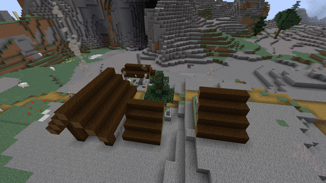 有的村庄天生错位,村民们所选择的地方不太好。本来应该是山脚之下的,偏偏将村庄建设在山顶之上。本来和谐的氛围,就因为石头的色调将其打破。整一个存在在山地的映衬之下显得格外秀丽,给MC中的玩家和NPC带来一种野外露营的感觉。要知道,在山地之中的怪物生成速度不亚于沙漠村庄的怪物生成速度,仅凭这点房屋和村民,没有铁傀儡的切身保护,其心理阴影面积究竟会有多大?