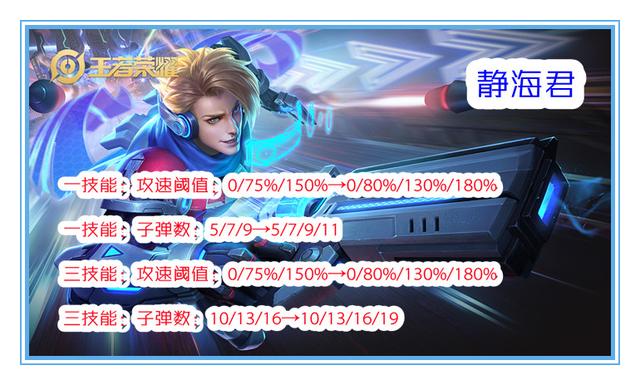 除了攻速阈值新增加了一个档次之外,更为关键的是马可波罗现在一技能和大招的子弹数相较之前也有了提升(也是增加了一个档次)。