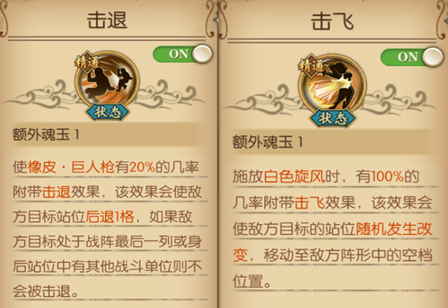 顾名思义,击退就是让目标后退,而击飞则是随机改变目标的站位。刷剧情的话,有时候会用到这个效果。