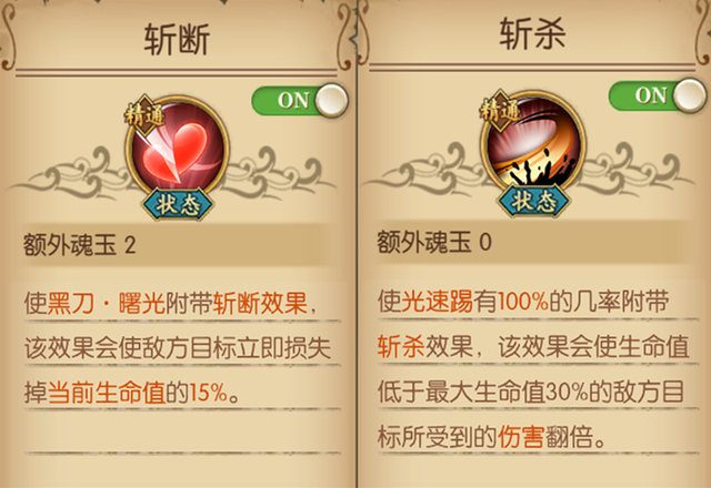 斩断的效果是对目标造成15%当前生命值伤害,而斩杀则是对血量低于30%的目标造成翻倍伤害。