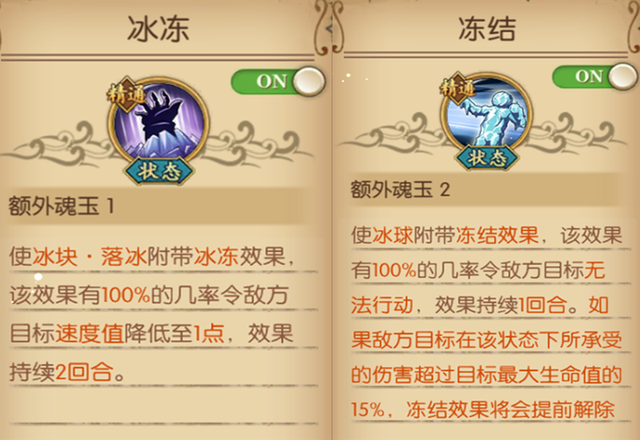 冰冻效果是将目标速度降低至1点,而冻结效果就是直接控住目标不给行动。原本冻结效果是会损血15%直接解除,但后来新青雉无视了这个弊端,成了一个毒瘤。