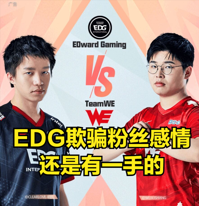 在EDG战队和WE战队的比赛当中,EDG战队先是在赛前放出厂长将会首发的信息,然后在比赛当中让厂长面对曾经的老东家WE战队,在这场EDG战队和WE战队的比赛当中,LPL观众也是感慨,edg战队用自己完美的营销手段,吸引了厂长的粉丝来观看,然后为了战队成绩又在第一把失利之后,让厂长下场换人,这种行为无疑是欺骗了很多厂长粉丝的感情。