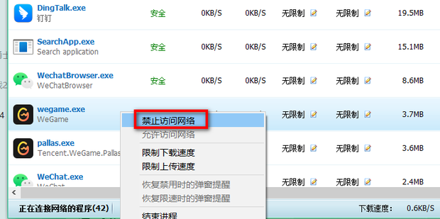 - 打开wegame的前提下右键wegame,点击禁止访问网络