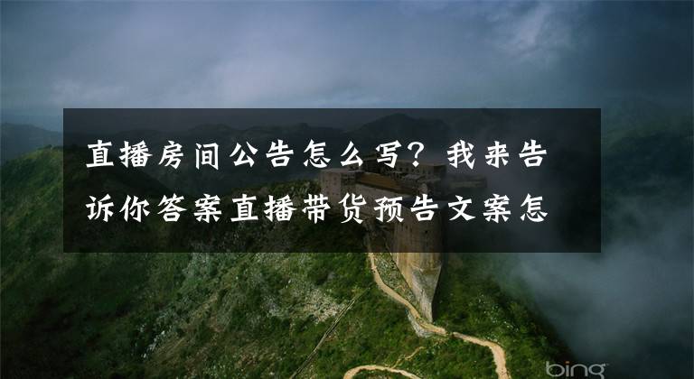 2.《直播房间公告怎么写?我来告诉你答案飘渺灵魂直播间公告》仅供读者参考,本网站未对该内容进行证实,对其原创性、真实性、完整性、及时性不作任何保证。