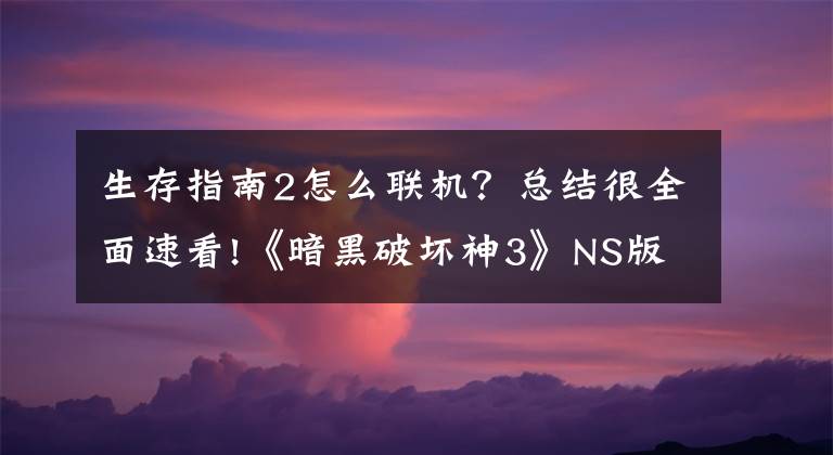 2.《生存指南2怎么联机?总结很全面速看!杉果双旦:《全境封锁2终极版》1.5折,《只狼》166元创新史低》仅供读者参考,本网站未对该内容进行证实,对其原创性、真实性、完整性、及时性不作任何保证。