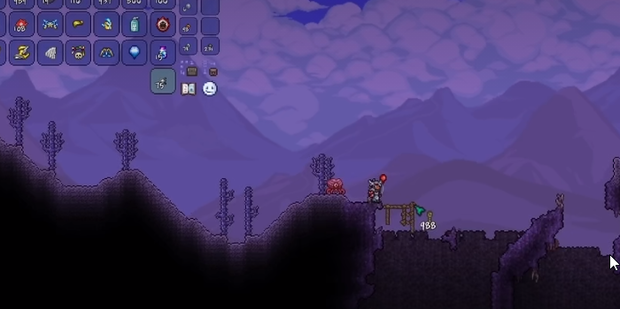 - 来到腐化之地后,用炸弹往下探索,找到暗影之球将他击碎,然后即可召唤世界吞噬者。
