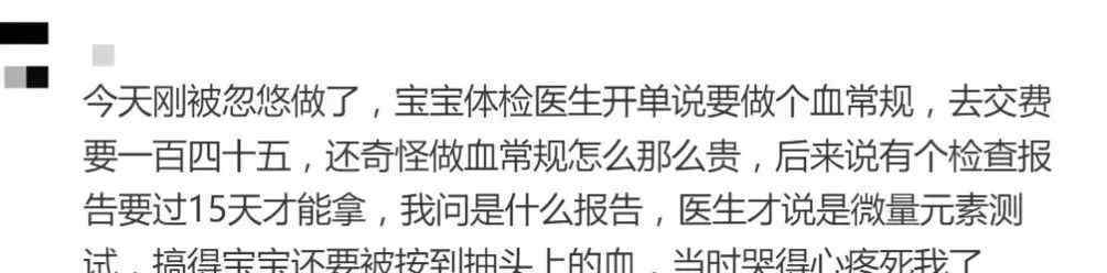 而且现在很多医生都告诉父母“婴儿体内微量元素的缺乏会影响身体发育,检查后要补齐”。然而,包括著名儿科医生崔玉涛、演员张思莱、马一利在内的许多育儿专家认为,微量元素检查是不必要的,甚至对儿童有害!
