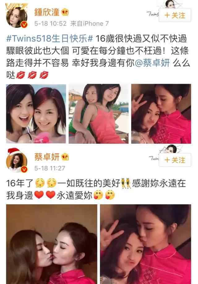 上个月,双胞胎正式成为了16年的军队。撒娇在微博上感谢对方的陪伴。两天后,520,他们在演唱会上接吻,感谢对方用同样的方式粘在一起。