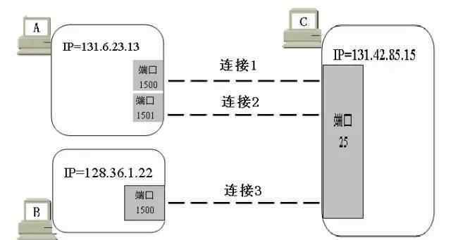 TCP使用“连接”(而不仅仅是“端口”)作为最基本的抽象,TCP连接的端点称为套接字,或者套接字和windows套接字。套接字包括IP地址(32位)和端口号(16位),总共48位。套接字、端口和ip地址之间的关系是:
