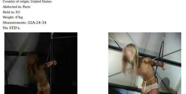 这个集团提供武器、毒品、杀人、人口贩卖、搞定各国护照等各种服务,其中向世界范围内贩卖女性,是他们的主营业务。他们通过上面类似的手段在欧洲、美国等各地绑架来年轻貌美的女性,像商品一样被拍高清照,标上国家、身高、体重、三围等基本信息,以及起拍价格,然后在其暗网上售卖,各个国家的买主,只要付定金,就可以先看一场高清直播,如果满意就可以付全款,他们就会将这个女性上门送到买主身边,无论买主身在何处。如果买家在欧洲,甚就会提供包邮服务……
