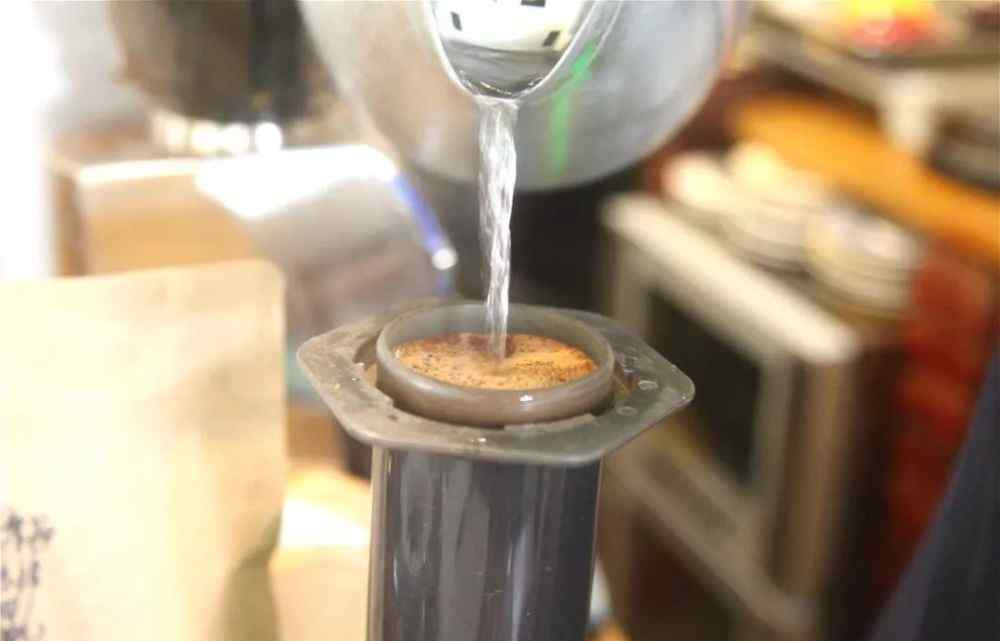 操作:用ale压预热,用反压,预先在滤盖上放两张湿的圆形滤纸,倒入粉末,一次注入90%水至227g,蒸至1:00,搅拌10圈,1:30秒垂直倒置加压,2:00分钟完成提取。