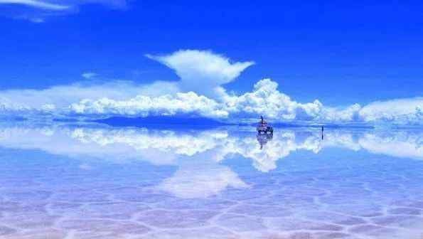 ★乌尤尼盐沼是玻利维亚最大的盐沼,呈月牙形,位于波托斯西部高原,海拔3660米,长150公里,宽130公里,面积9065平方公里。每年夏天湖水干涸,留下以盐为主的矿物外壳,中间6米厚。人们可以开车穿过湖。尤其是雨后,湖面像一面镜子,反射出一种不在人间的美丽而令人窒息的景象,被称为“天镜空”。
