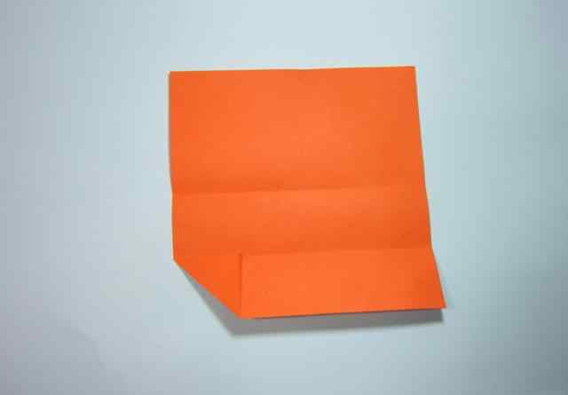 第三步:将左下角沿着折痕向内折叠成一个三角形。